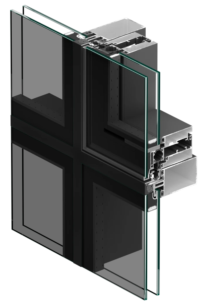 сделать алюминиевый каркас невидимым снаружи. На фасаде видны только стекла и узкие швы между ними, заполненные герметиком.