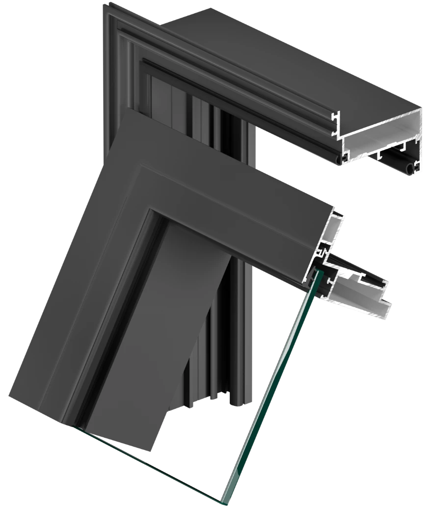 Система КП68 предназначена для изготовления «холодных» створок, встроенных в фасад. Конструкции используются в вертикальных фасадах как створки с открыванием наружу на верхнем горизонтальном подвесе. Данная система упрощает выполнение фальш-фасада стены при условии расположения створок напротив оконных проемов.