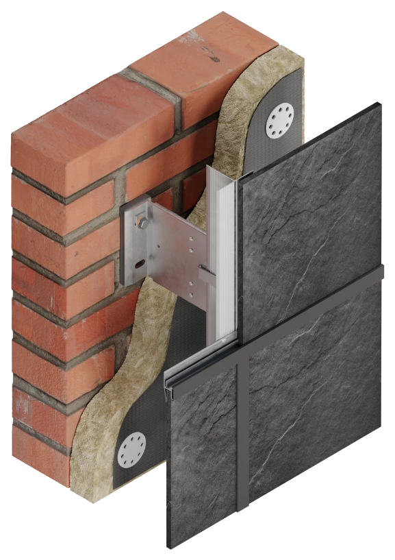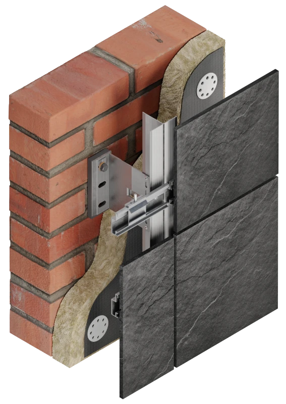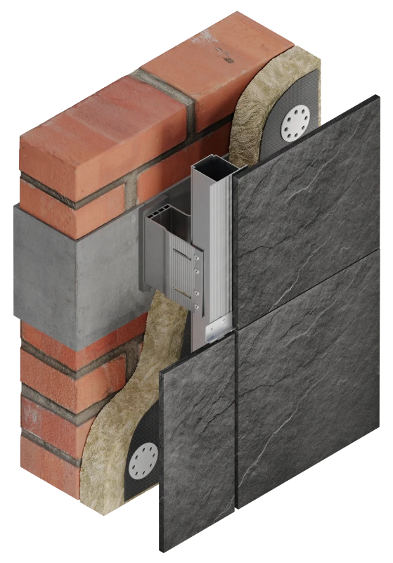 Система КП предназначена для облицовки и утепления наружных стен здания керамогранитом со скрытым и видимым способами крепления. В алюминиевой