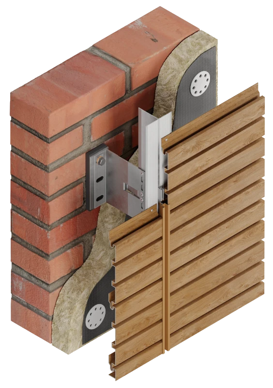 На плоскость из нескольких соединенных панелей можно с помощью современных методов окраски нанести любой рисунок. Метод крепления облицовки может быть классическим и наборным (имитация крупноформатной облицовки), когда некоторые участки фасада не имеют швов между профилями и выглядят как цельные поверхности. Облицовочные профили вставляются один в другой. Угловые направляющие помогают выполнить поворот в плане на любой угол. Специальные салазки позволяют компенсировать неровности несущей стены.