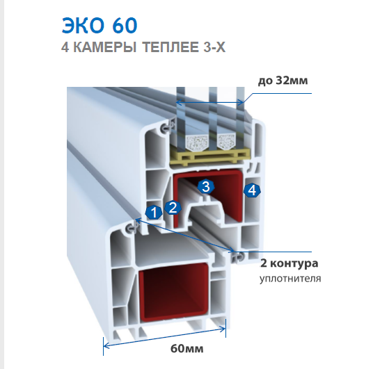 Ширина 60 мм , 4 камеры, 2 инновационных камерных уплотнителя