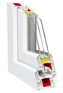Шесть воздушных камер в профиле для сопротивления теплопередаче системы по классу 1 (ГОСТ 30673-99): 0.87 м²х°С/Вт (с усилительным вкладышем) ; 0.94 м²х°С/Вт (без усилительного вкладыша)